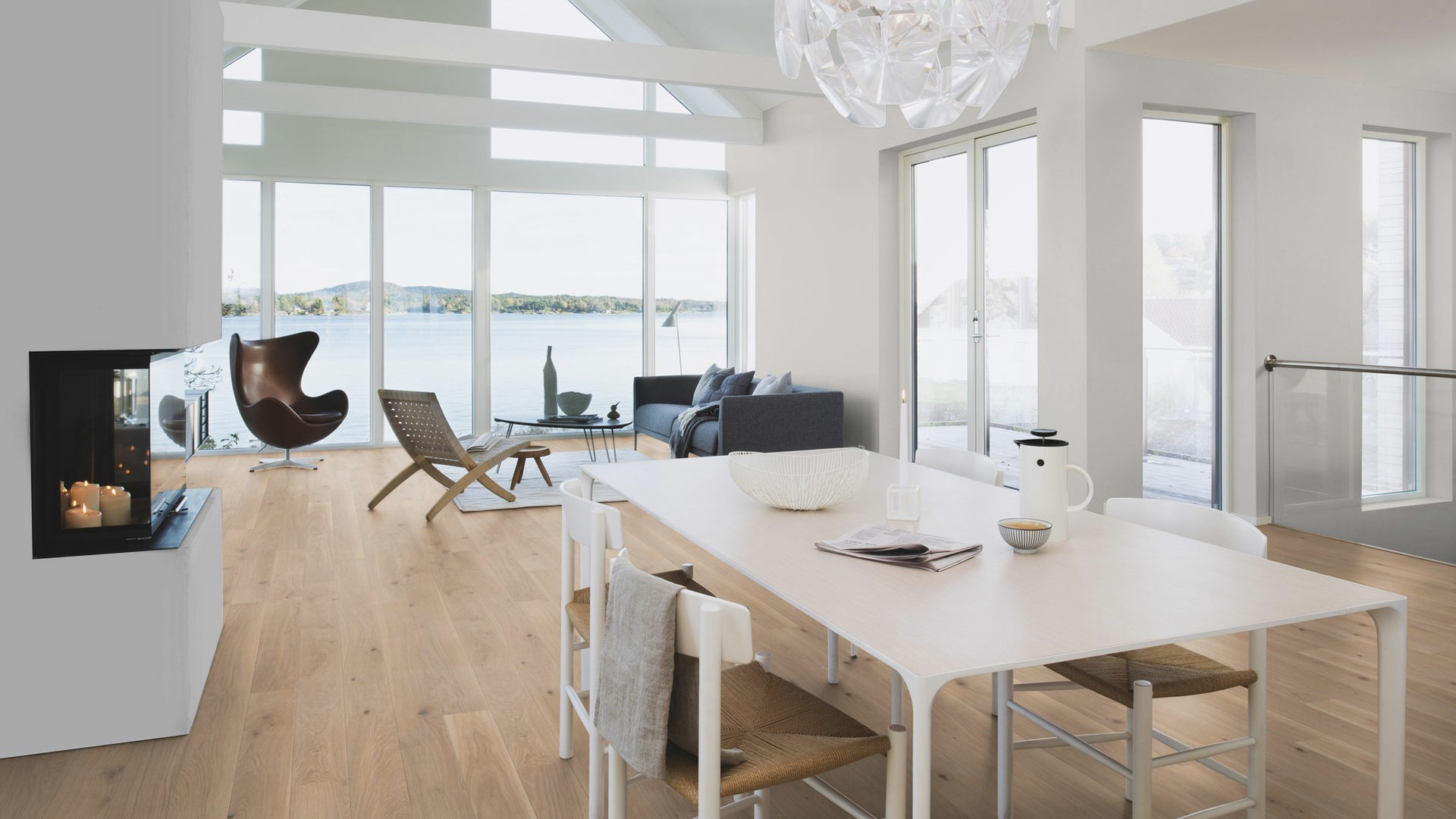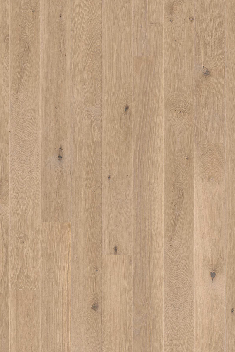 The high-quality natural oil-sealed floor is protected from dirt, dust and liquid spills and is easy to care for. Boen Oiled Floorings are one of the best and most wear-resistant natural oil surfaces in the market. They are breathable and they do not contain any harmful emissions, the ingredients are completely natural. White pigmentation is used to finish the wood to establish a modern appearance.