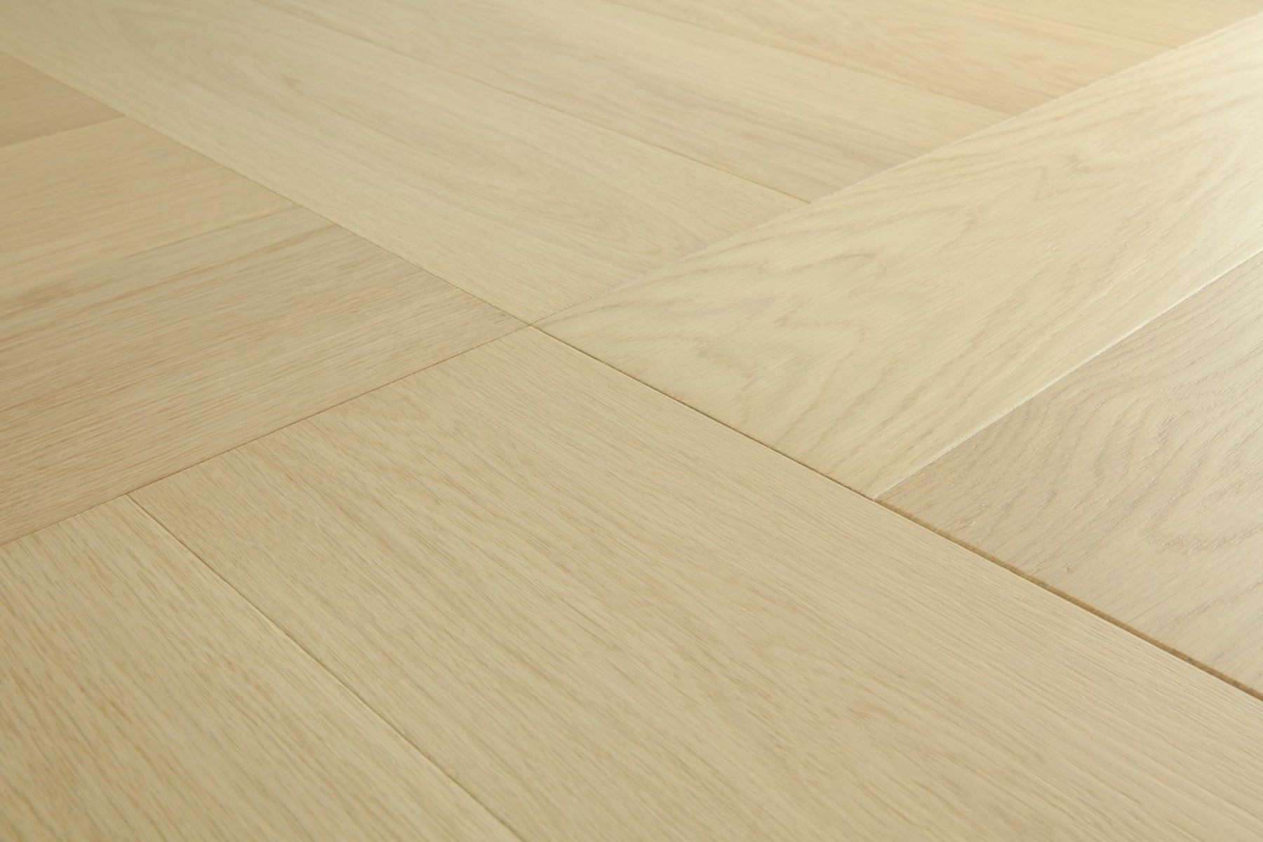 QuickStep Disegno Creamy Oak Engineered Parquet Flooring, Extra Matt Lacquered, 145x13.5x580mm makes the herringbone pattern easy to install. It even lets you get creative through two possible installation patterns.