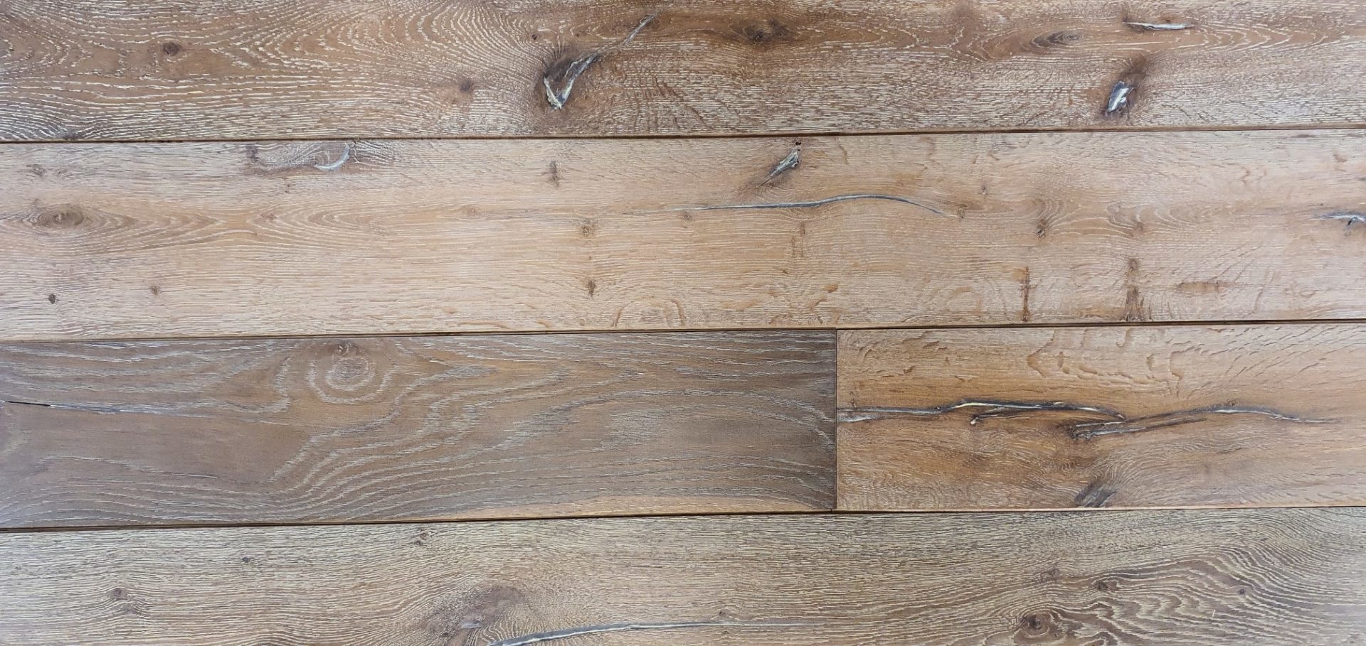 Tradition Antique Engineered Oak Flooring, Distressed, Brushed, Smoked White Oiled, 220x15x2200mm