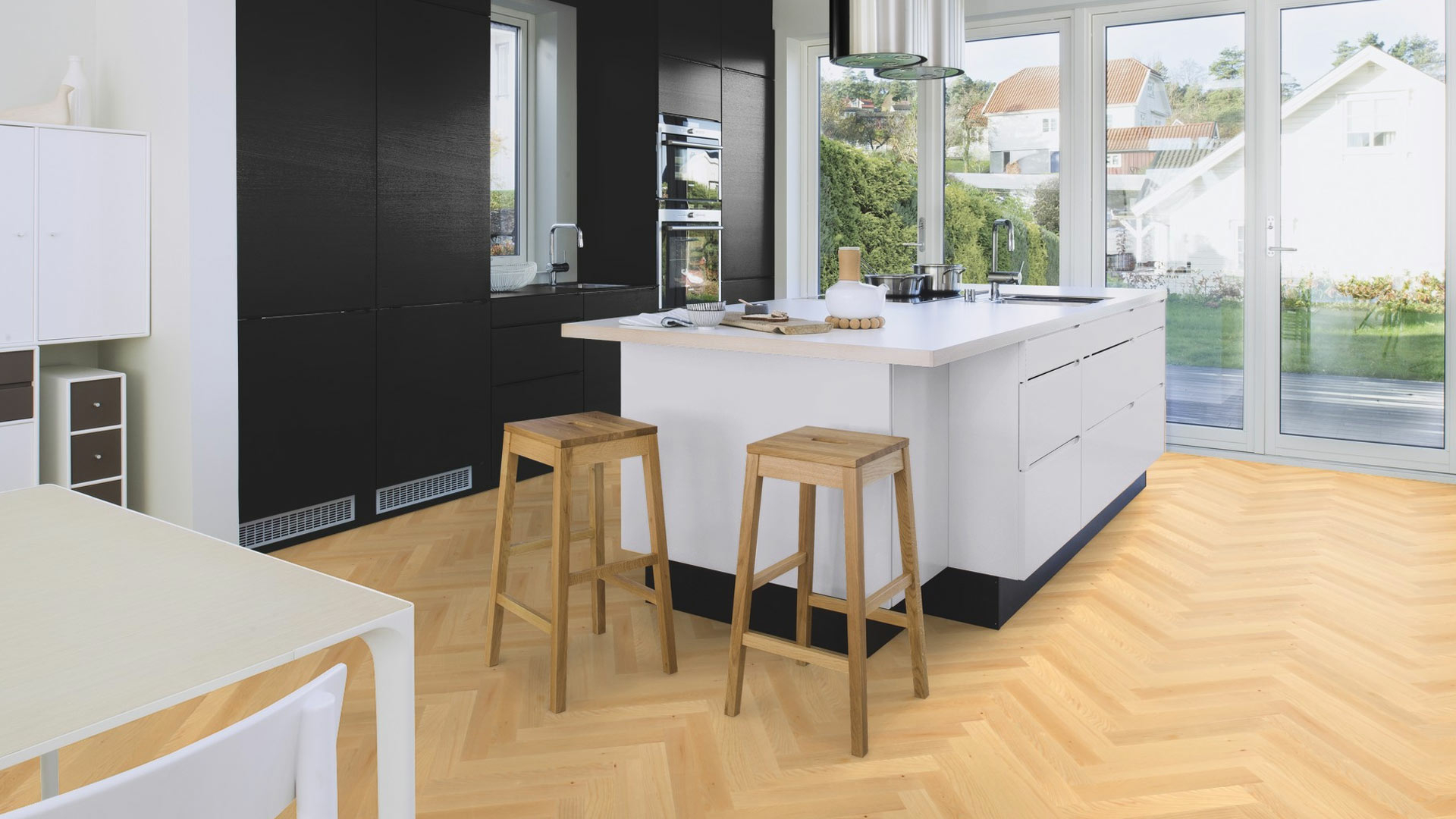Boen 2-Layer Parquet is equipped with a tongue-and-groove system and glued to the subfloor across the whole surface. It offers optimal room acoustics, it is extremely stable and can tolerate changes in climate extremely well.