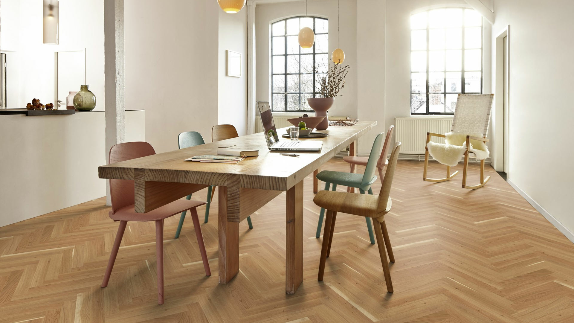 Boen Engineered 2-Layer Parquet Flooring is equipped with a tongue-and-groove system and has to be glued down to the subfloor across the whole surface. It offers optimal room acoustic, is extremely stable and can tolerate climate changes extremely well.