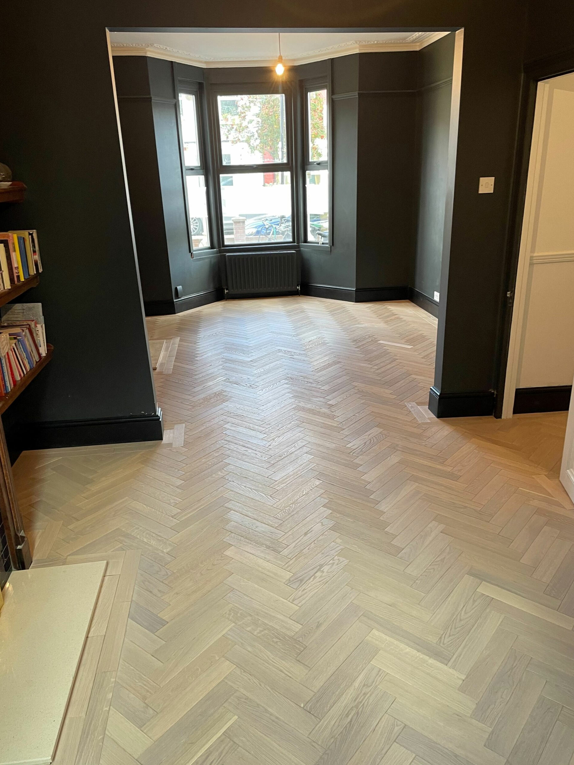Book a fitting service for your Tradition Classics Herringbone Engineered Oak Flooring, Pinot Gris Brushed, Oiled, 70x15x350mm (Greater London Area only). Unfinished products might need additional sanding and sealing.