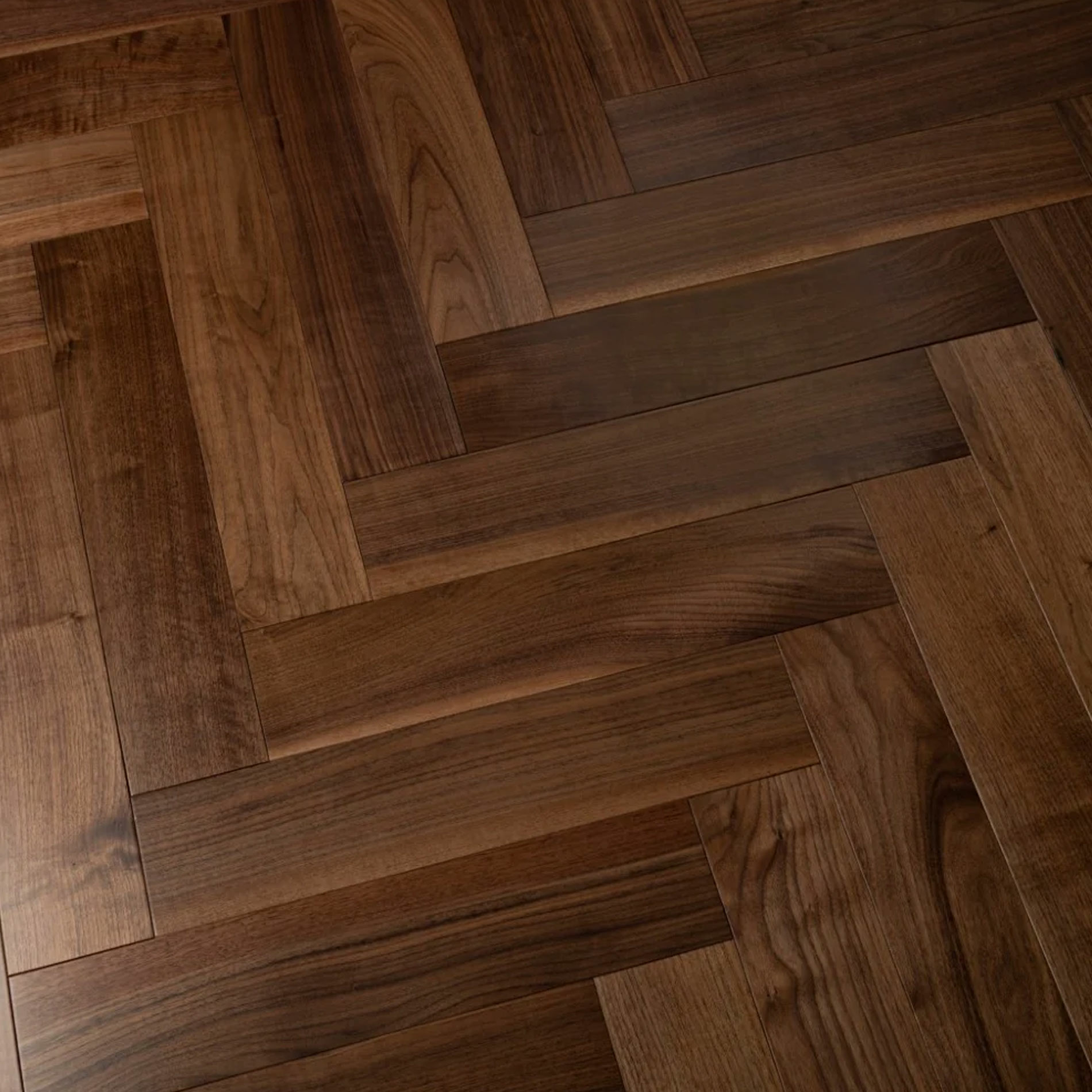 Tradition Walnut Herringbone Engineered Parquet Flooring, Natural, UV Lacquered, 125x14x600mm is a high-quality flooring with a natural grade and lacquered finish.