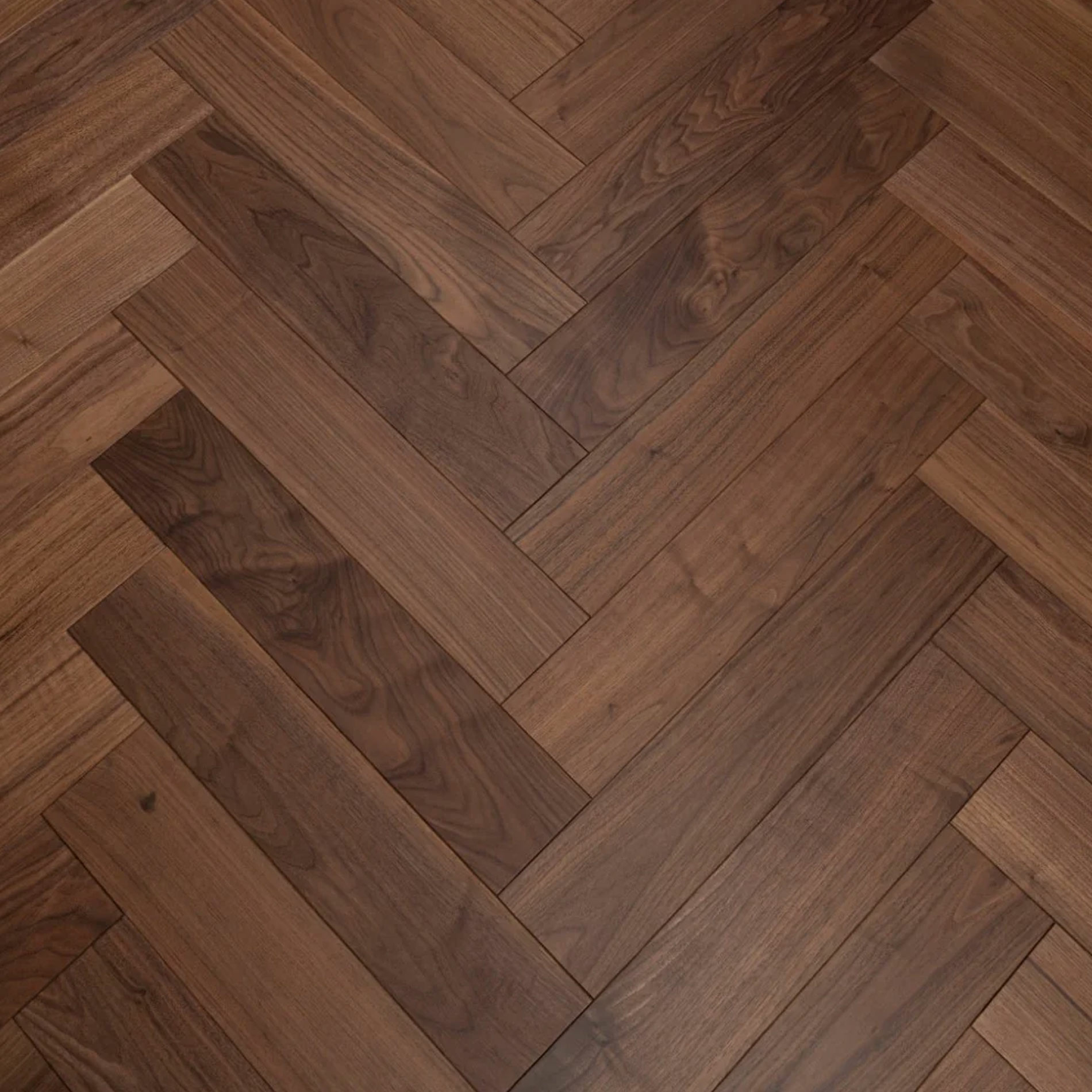 Tradition Walnut Herringbone Engineered Parquet Flooring, Natural, UV Oiled, 125x14x600mm is a high-quality flooring with a natural grade and lacquered finish.