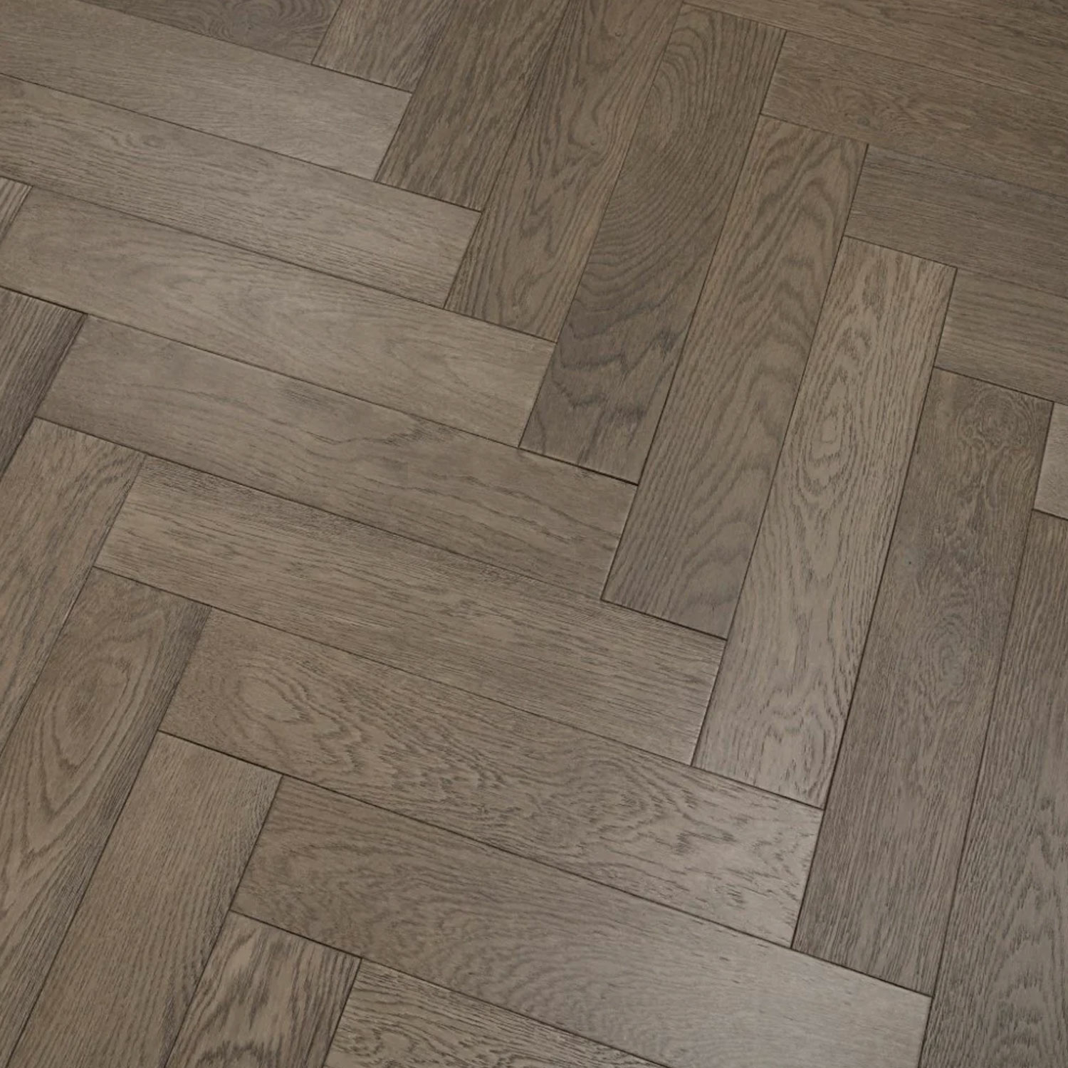 Tradition Engineered Oak Parquet Flooring, Gunmetal Grey, Prime, Brushed, Matt Lacquered, 125x18x600mm is a high-quality flooring in the natural grade.
