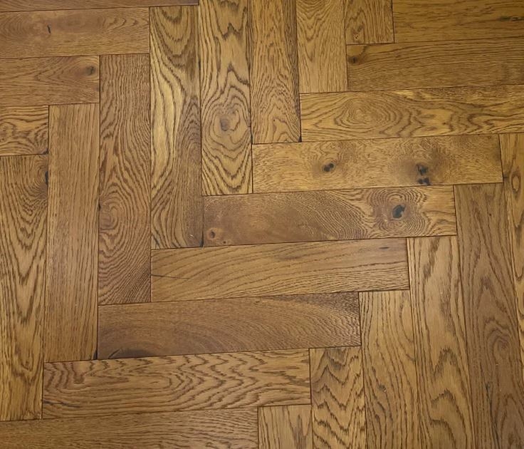 Tradition Engineered Oak Parquet Flooring, Herringbone, Golden Wheat Brushed, Matt Lacquered, 90x10x450mm is a high-quality flooring in the prime grade.