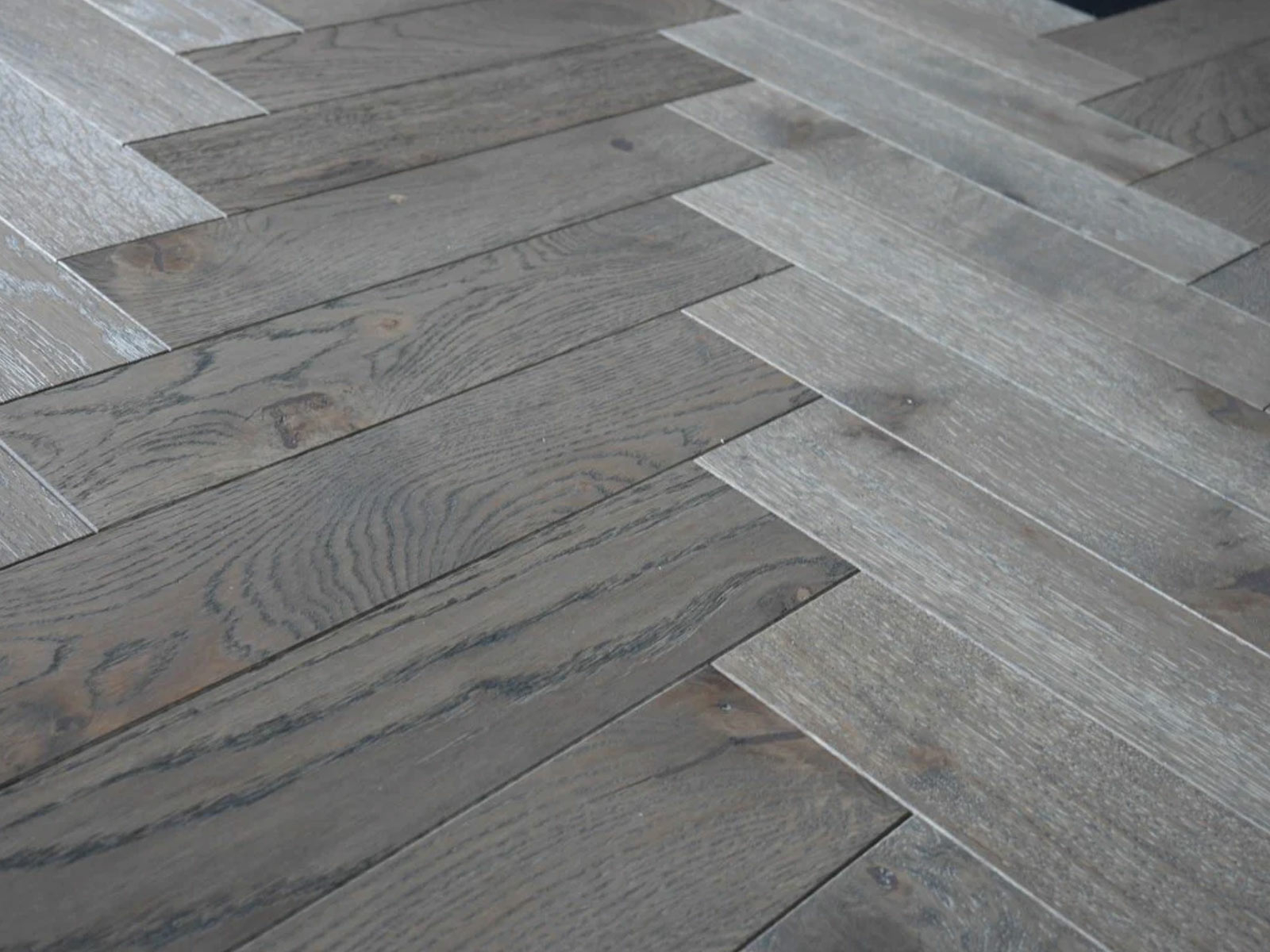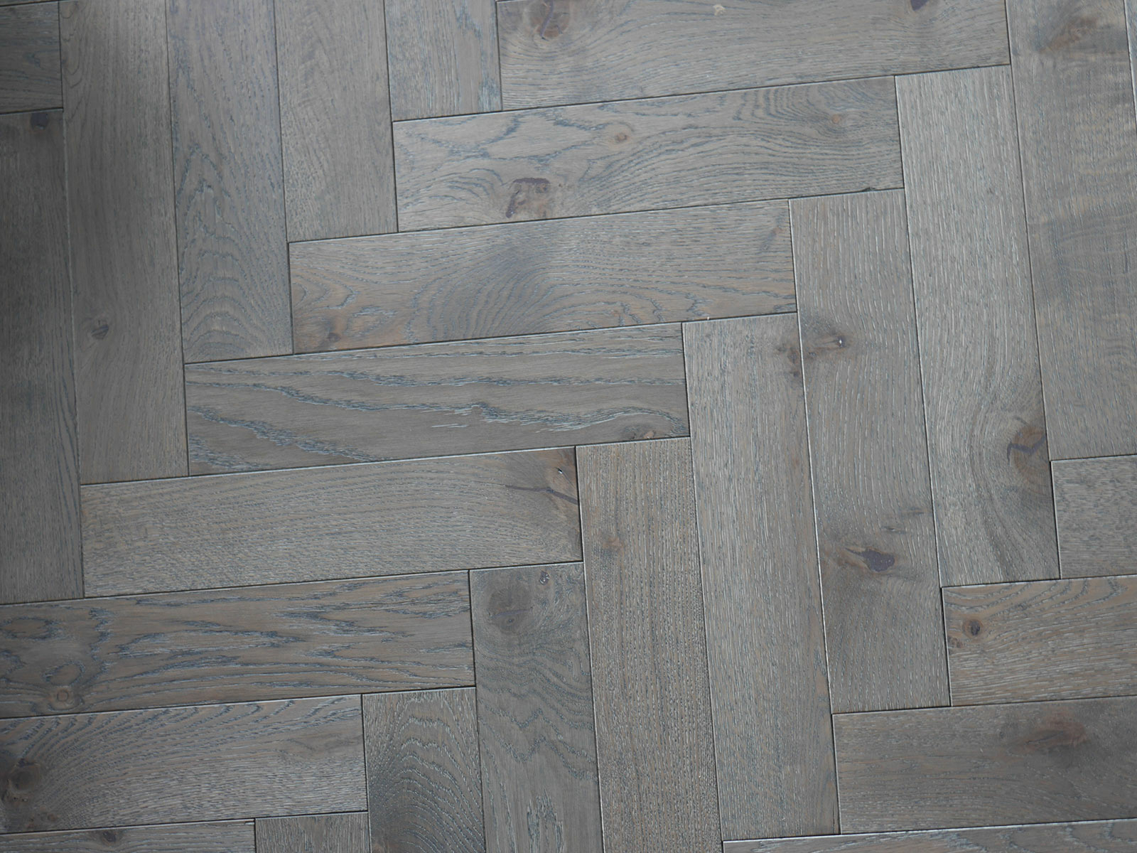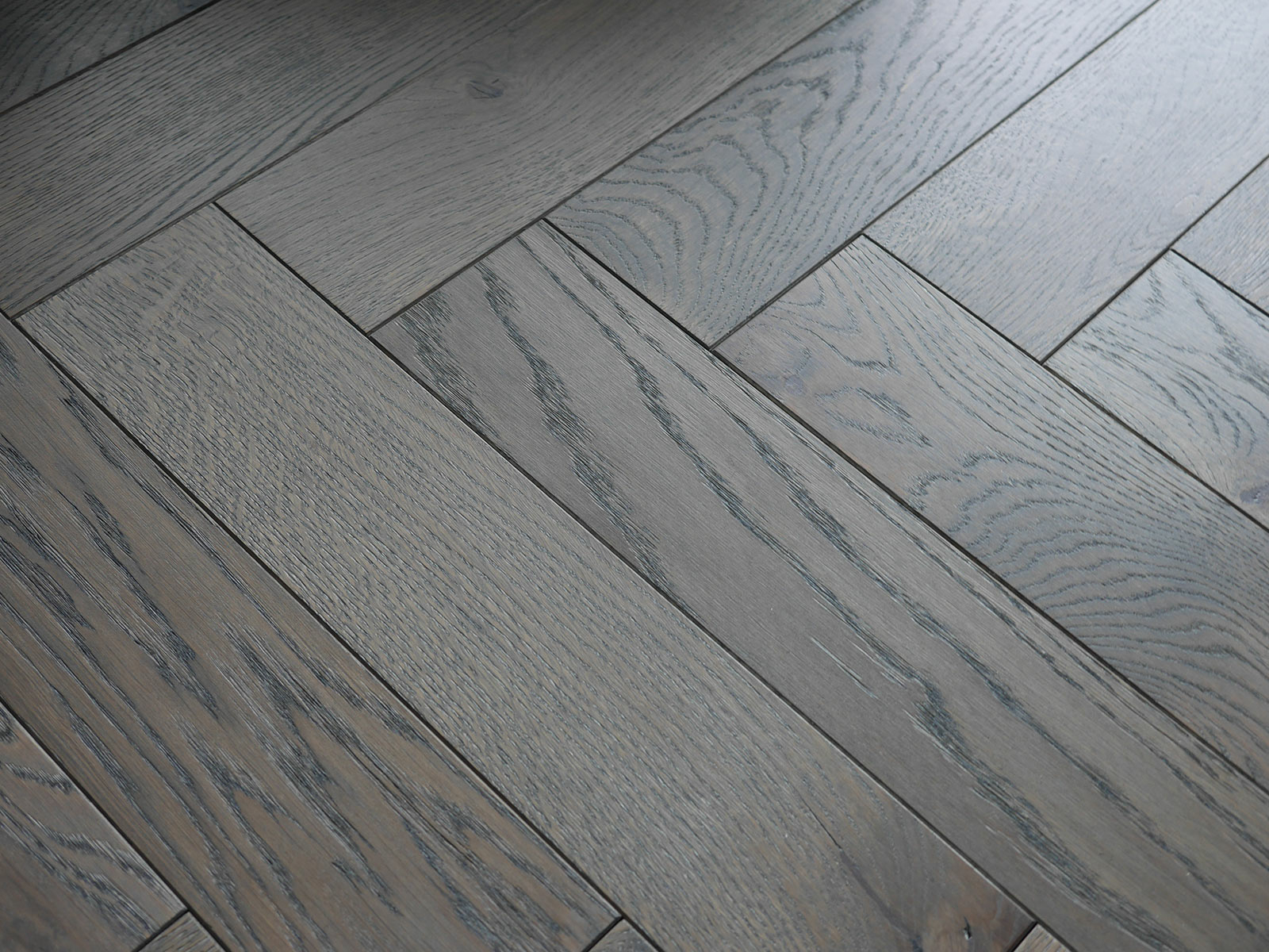 Tradition Engineered Oak Herringbone Flooring, Grey, Hardwax Oiled, 90x18/4x400mm is a high-quality flooring in the natural grade.