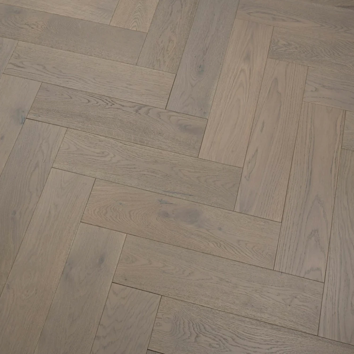 Tradition Engineered Oak Parquet Flooring, Herringbone, Grey, Brushed, UV Oiled, 150x14x600mm is a high-quality flooring in natural grade and lacquered finish.